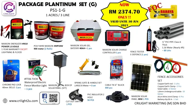 1 Acres 3 Line Power 1 0 Joule 30wsolar Maxson Package Platinum Set G For Electric Fencing Pagar Elektrik Kebun Lazada